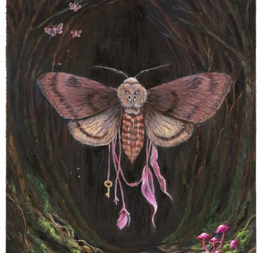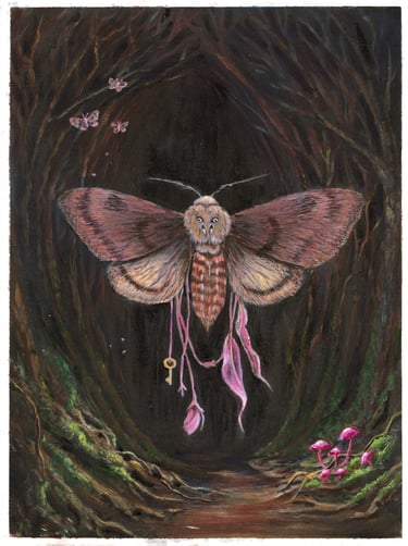 Shadows lean closer, moth drift through and the forest bends toward the light.